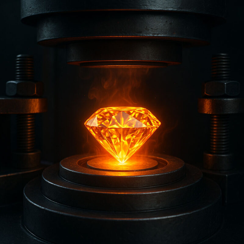 The Chemical Vapor Deposition (CVD) method is one of the most advanced techniques to grow gem-quality diamonds. A tiny diamond seed is placed inside a vacuum chamber filled with carbon-rich gases. At high temperature, carbon atoms settle layer by layer, creating a pure diamond crystal.